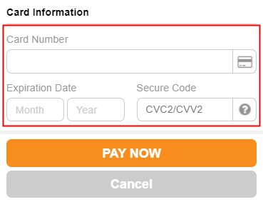 If you checkout with a Debit / Credit Card, just enter your * Card Number, * Expiration Date, and * Secure Code.